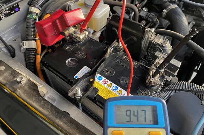 乗用車が積んでいる12V(ボルト)のバッテリーは、12.6V前後が正常値なのですが、12.3Vくらいになるとエンジンを始動できない事態が発生してきます。