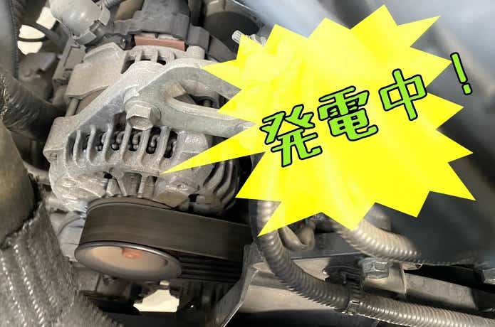 車のエンジンには発電機(オルタネーター)が付いていて、エンジン起動中は発電・充電をしながら動いています。