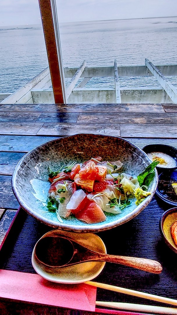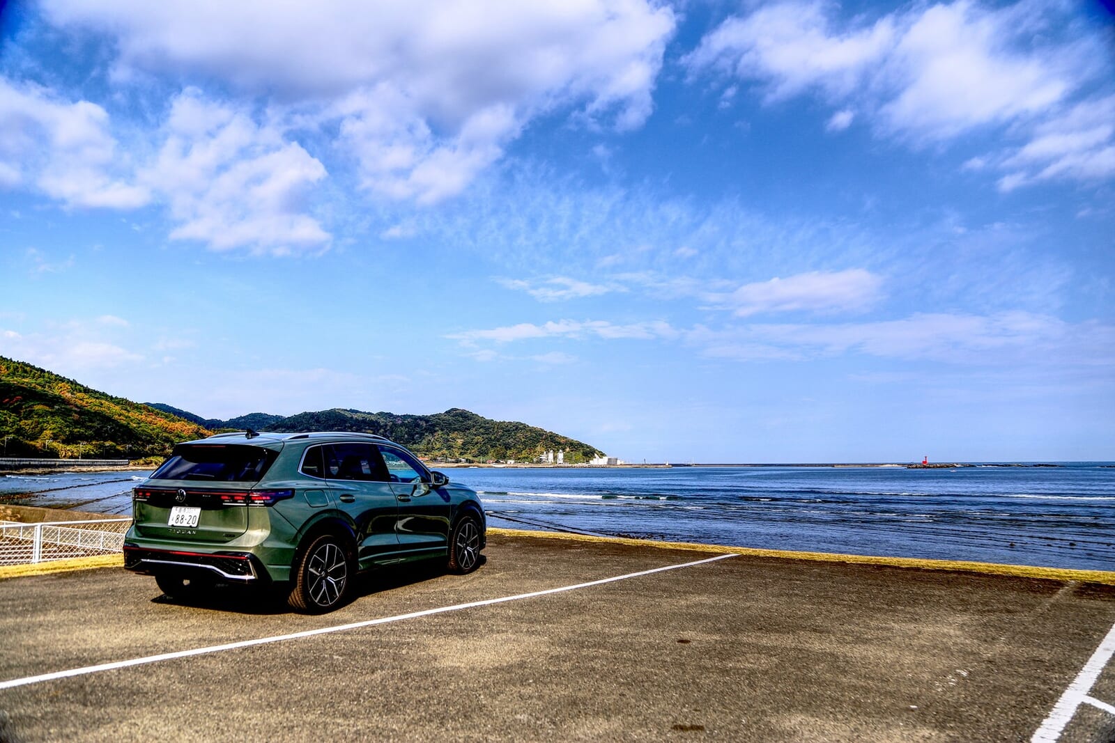 途中、撮影スポットである「デモン・デ・マルシェ」に立ち寄り、スタッフに勧められた「えぷろん亭」で昼食をとることにした。眼前に広がる大海原を眺めながら、新鮮な海鮮丼を口にする。こうした旅の悦びをサポートしてくれるのも、疲労の少ないグランドツアラーの条件だ。ティグアンのシートは、サイズもたっぷりでコシがあり、長時間のドライブでも腰への負担が驚くほど少ない。