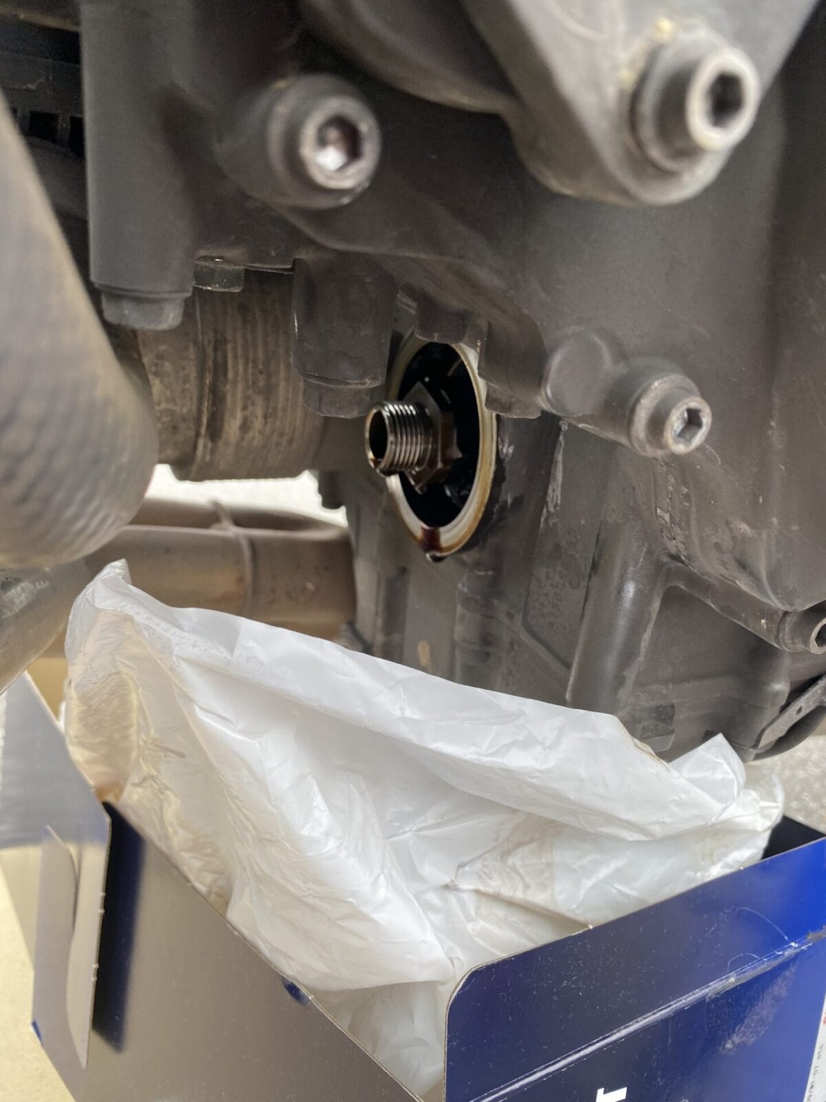 オイルが抜けきったらドレンボルト、オイルフィルターを規定トルクで取り付けます。