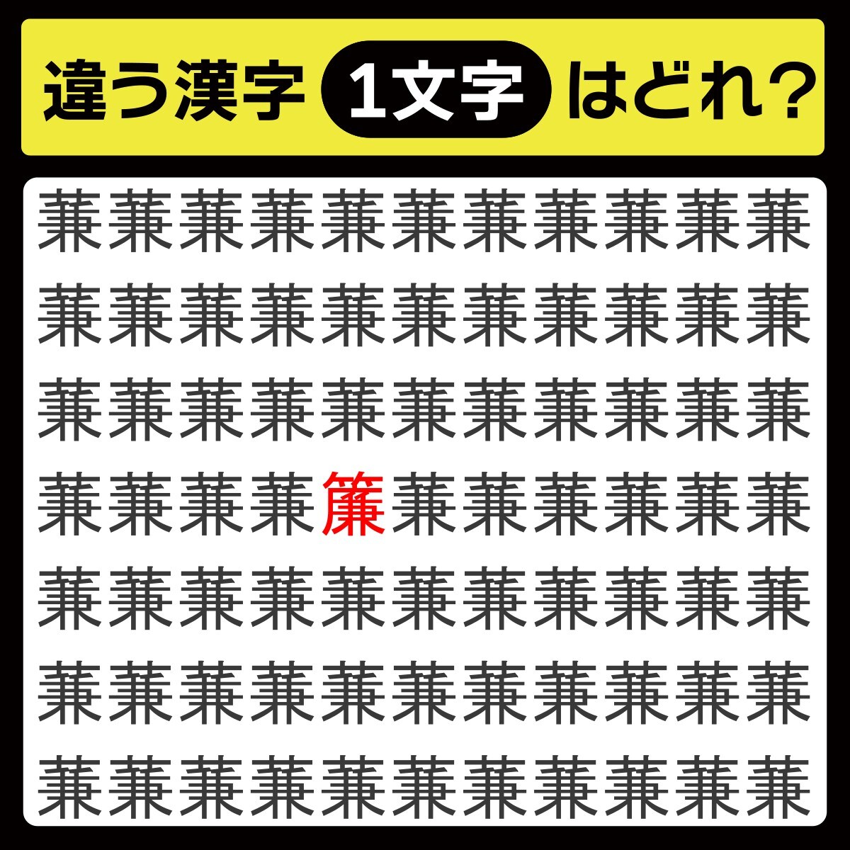 違う漢字は、上から4行目、左から5番目の文字でした!