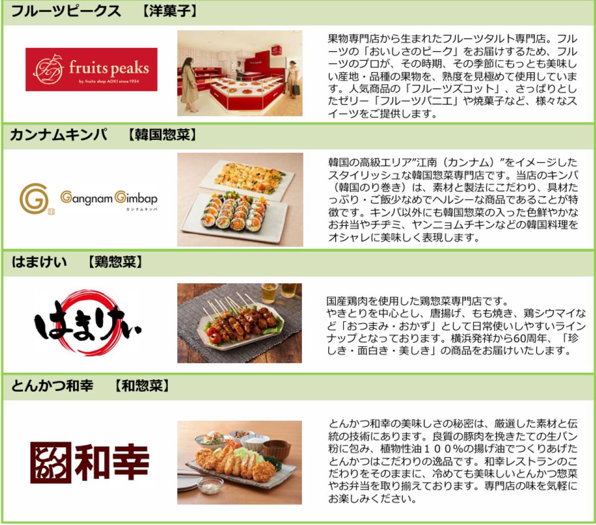 毎日の買い物に便利な食料品店や惣菜店、気軽に立ち寄れるスイーツショップや軽食・カフェのお店に加え、メガネ店、理髪店など13店舗が集まります。