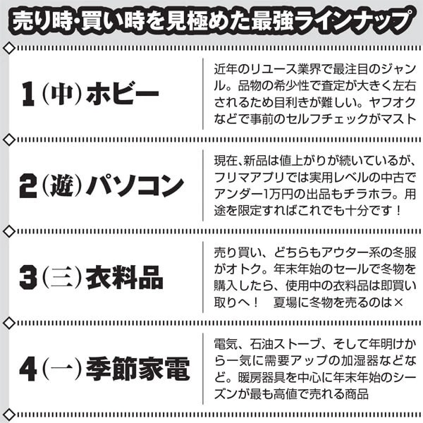 この時期に下取り額が高額になる品物から、ゴミだと思っていたけど実はヤフオクなどで入札が止まらない隠れたお宝まで、リユース店やフリマアプリをオトクに活用できるテクニックを紹介します!