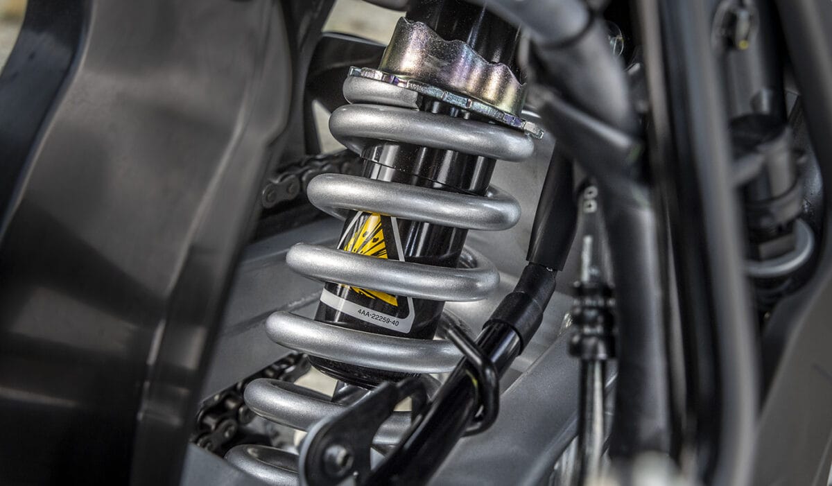 フロントには、インナーチューブ径41mmのサスペンションを採用。減衰特性とバネ定数のバランスを取ることに加え、アウターチューブの底部分にオイルロックピースを採用。ストロークは 215mmとし、優れたクッション性と足つき性の両立を図っています。