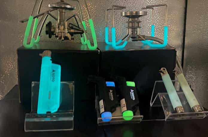 この他「ガス抜きツール」「マイクロトーチ アクティブ」「レギュレーターストーブ専用アシストグリップ」といった人気アイテムが、グリーン/ブルーの2色展開の蓄光モデルとしてスタンバイ中。