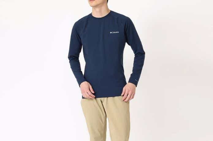 コロンビア「オムニヒートインフィニティ―ニットロングスリーブクルー」は、熱反射保温テクノロジーを採用した高機能ベースレイヤー。内側の金色のドットパターンが体温を効率よく反射し、薄手でもしっかり暖かさを感じられます。