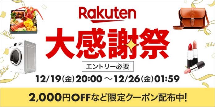 さらに今、楽天市場では12月19日(金)20時から12月26日(金)1時59分まで『大感謝祭』を開催!