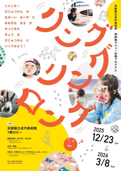 美術館のゆったりとした空間は、作品鑑賞を脇に置いてもなかなか魅力的な場所。普段は小さな子ども連れで行くのは難しいが、京都国立近代美術館では12月23日(火)~2026年3月8日(日)の期間、美術館デビュー応援プログラム2025「リング・リング・ロング」を開催する。美術館の1階ロビーが、小さな子どもたちとのんびりリラックスして過ごせる場所になる。