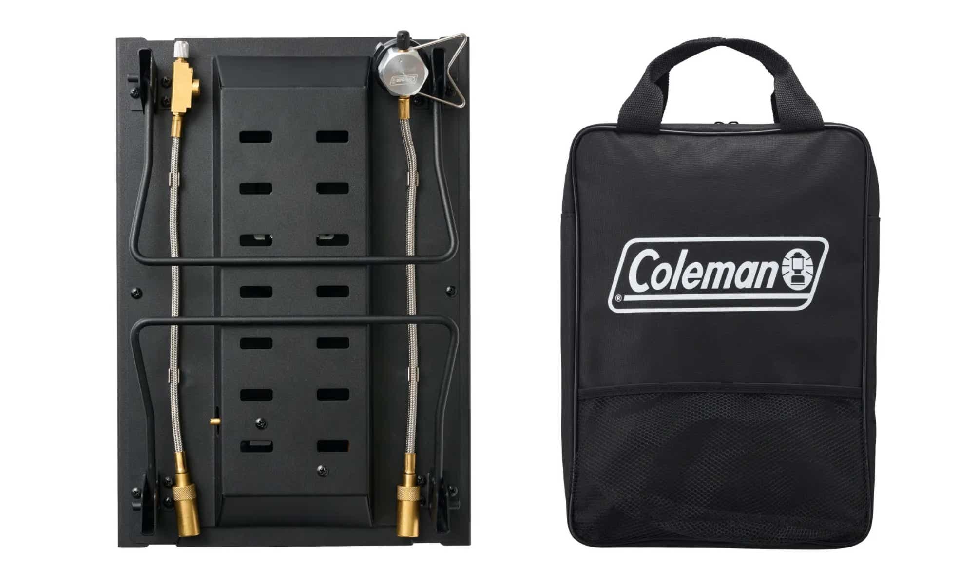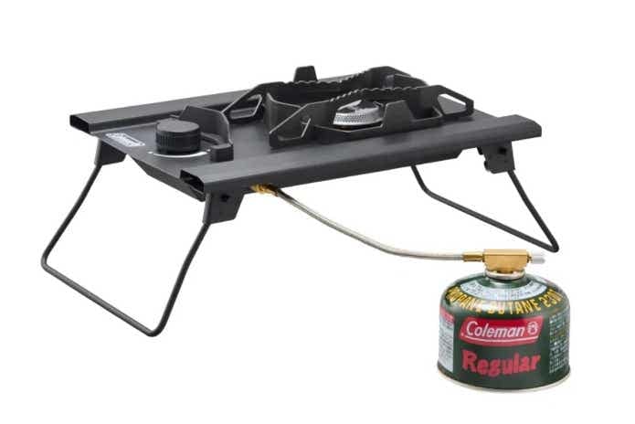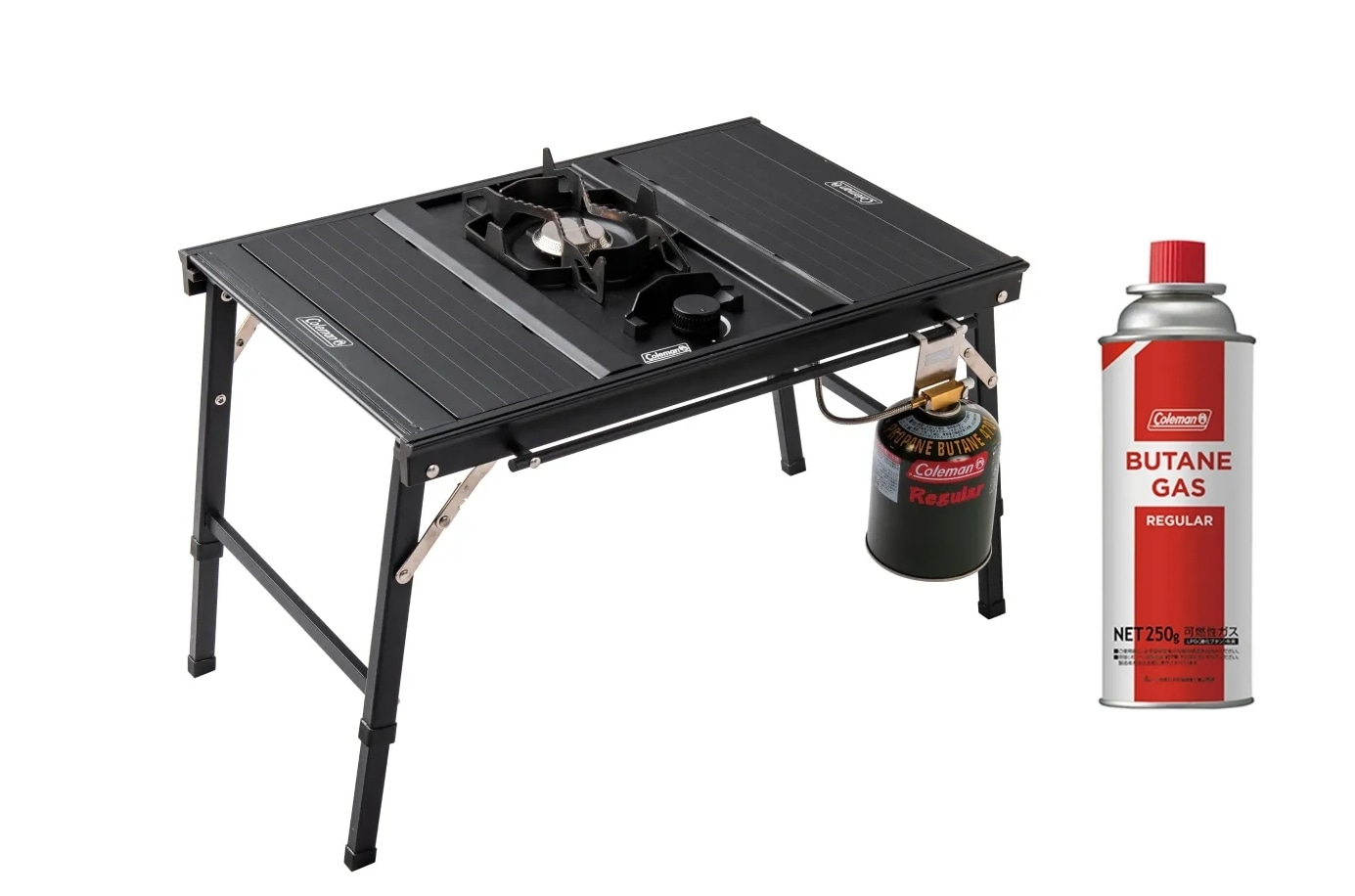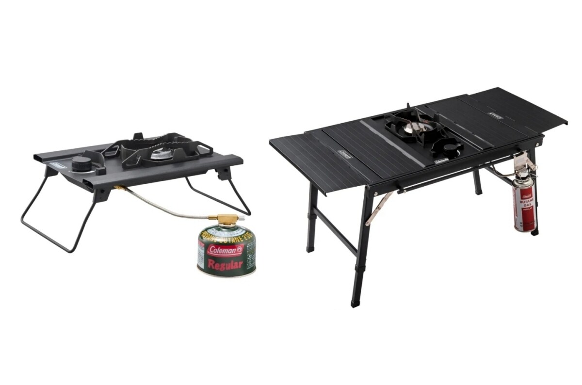 今回、コールマンのラインナップに加わるのは、卓上で使えるバーナーの「デュアルガスバーナーストーブ」と、同アイテムと組み合わせて使える専用テーブル「フラットテーブル/60(ブラック)」。