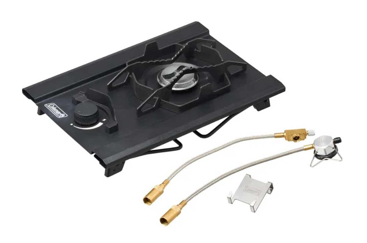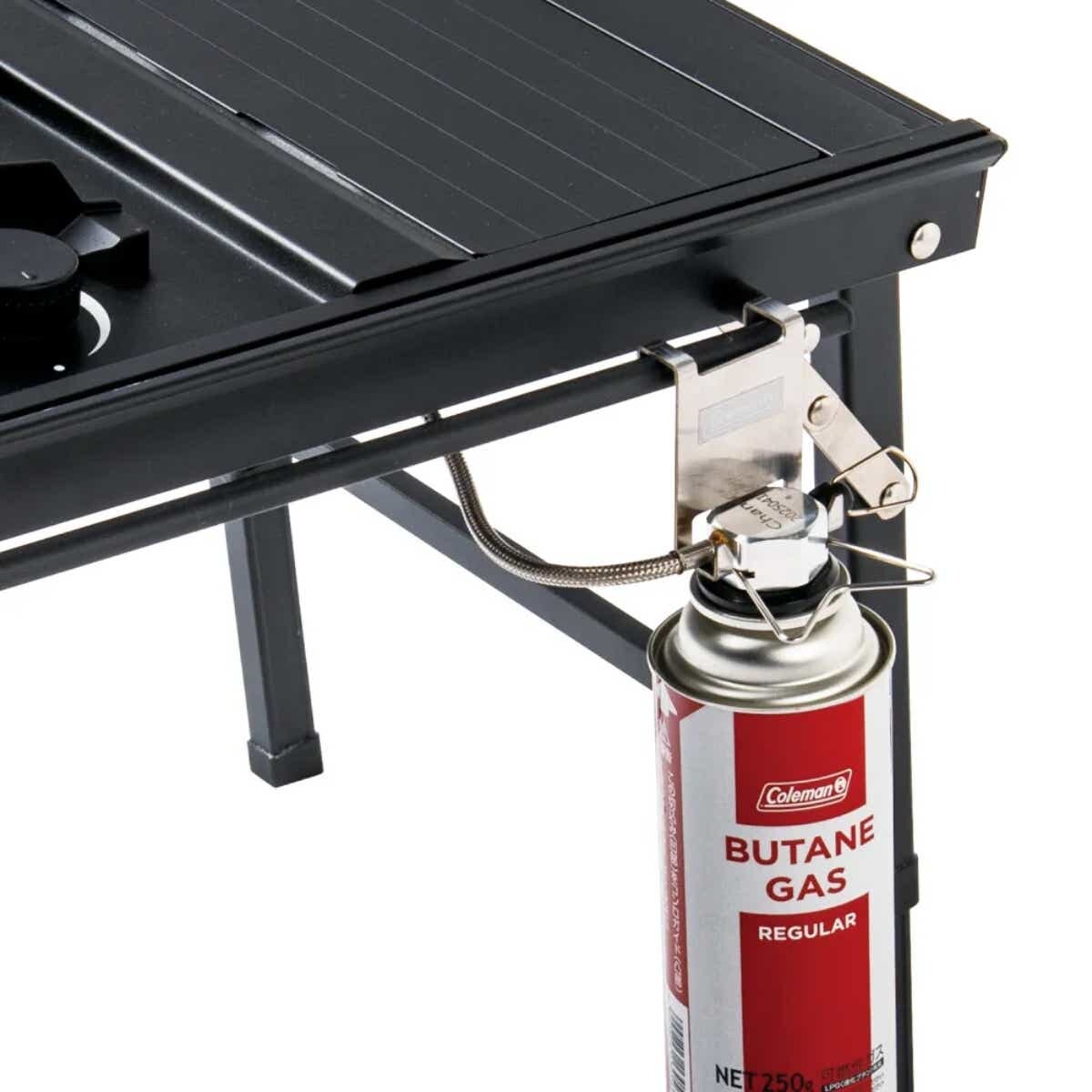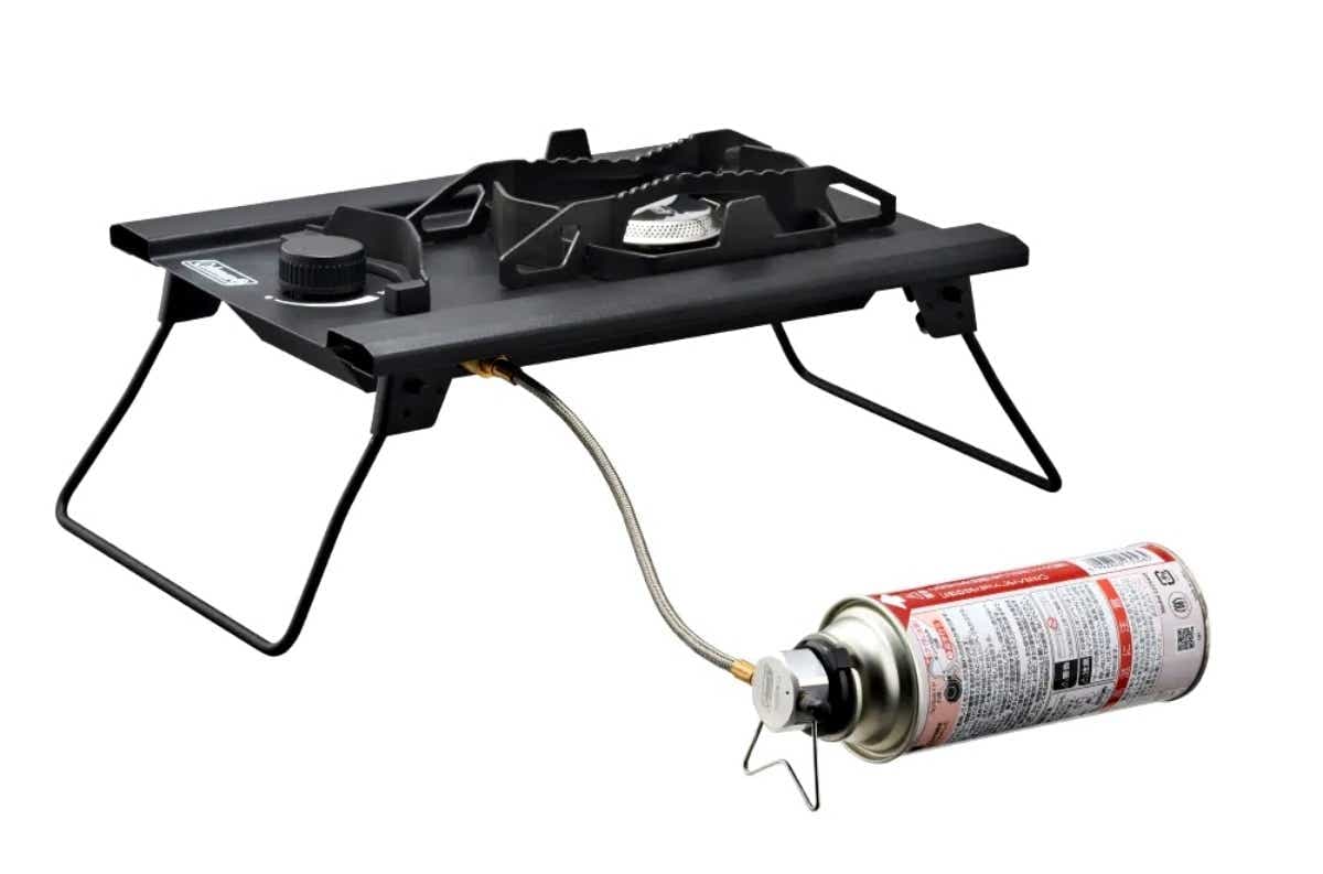 今回、コールマンのラインナップに加わるのは、卓上で使えるバーナーの「デュアルガスバーナーストーブ」と、同アイテムと組み合わせて使える専用テーブル「フラットテーブル/60(ブラック)」。