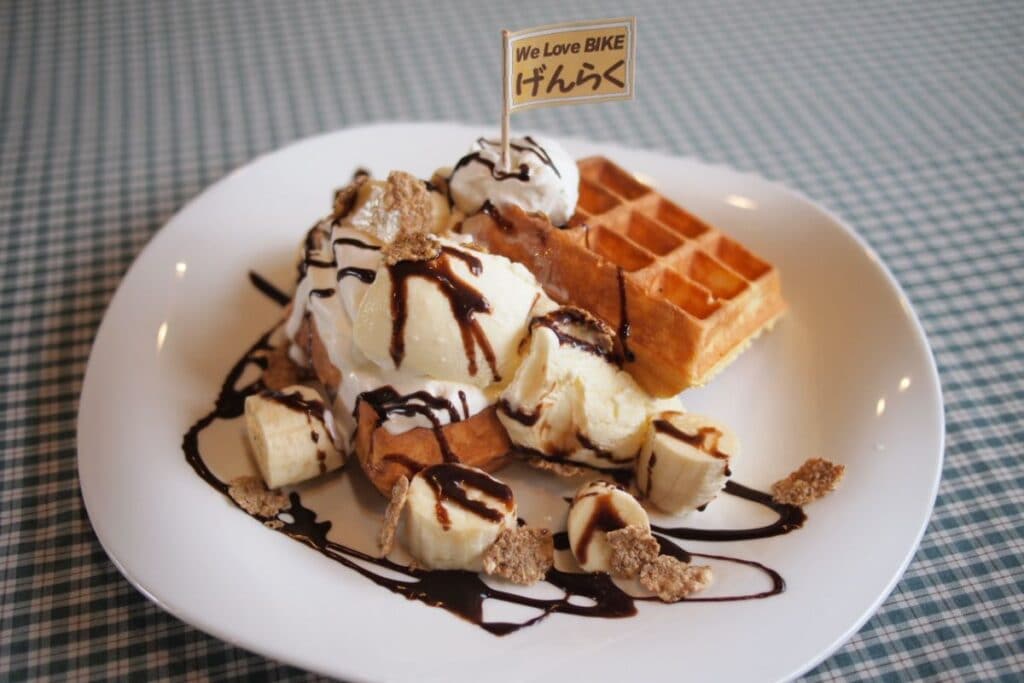 ライダーズカフェを名乗るお店ではないが、多くのライダーに愛される「Cafe&Bakery げんらく」。自家培養の天然酵母を用いたパンは店頭に並び、カフェではそのパンを使った料理や豊富なメニューが楽しめる。オーナー夫妻はバイク好きで、週末には多くのライダーが訪れる交流の場となっている。
