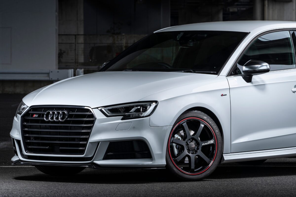 ブラックボディに外周のレッドラインのコントラストが、スポーティな雰囲気をいっそう高めてくれる。シンプルながら存在感のあるスタイルを持つ本格スポーツホイールだ。