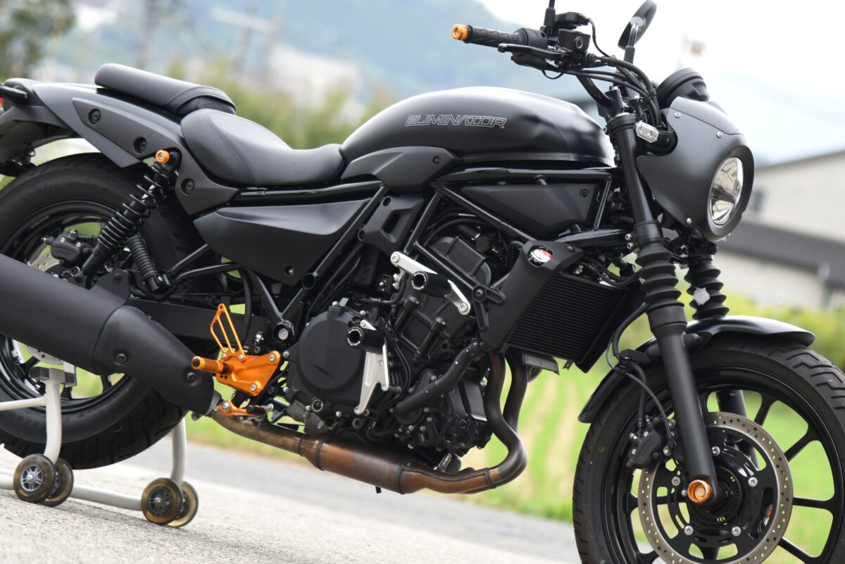 カワサキの人気クルーザー・新型エリミネーター。その走りはスポーティで、大柄なボディに反して軽快なライディングが楽しめる。そのポテンシャルをもう1段階引き出すカ…