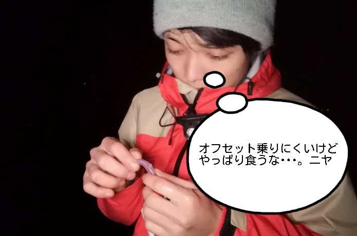 オフセットをワームに隠してしまって、とりあえず投げる。