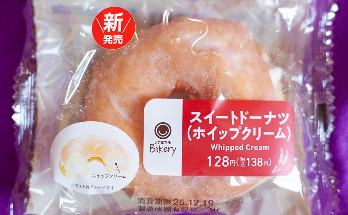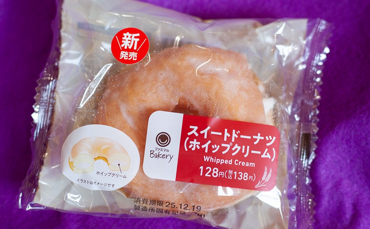 2025年12月16日(火)、ファミリーマートは、「スイートドーナツ(ホイップクリーム)」(税込138円)という新商品を発売しました。