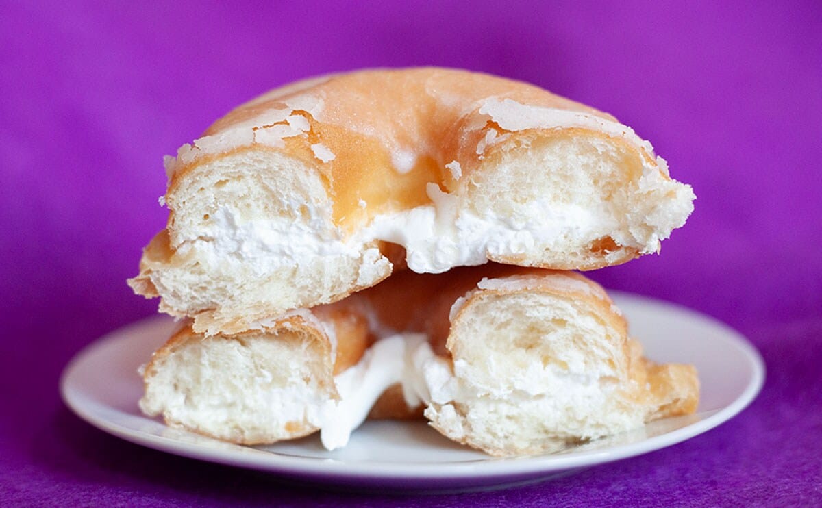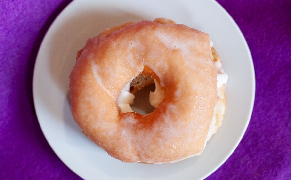 この商品は、ふんわりとやわらかなドーナツに、シュガーグレーズかけたもの。なのですが、単なる王道ドーナツではなくて、生地の中にホイップクリームがサンドされているんです。