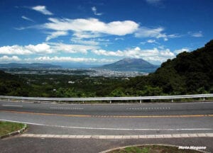 九州自動車道鹿児島ICから谷山ICを経て指宿市・池田湖へ向かう、薩摩半島の尾根を縦断する「指宿鹿児島インター線」は、一部有料の絶景スカイライン。錦江湾や桜島、大隅半島を望む展望場所が点在し、整備の行き届いた2車線の快走ルートを楽しめる。125cc以下は有料区間が通行不可。錦江湾展望台や千貫平展望台などが人気で、喜入の石油備蓄基地を望む樋高展望台も見どころ。走りながら好みの場所で撮影できる魅力的な道だ。