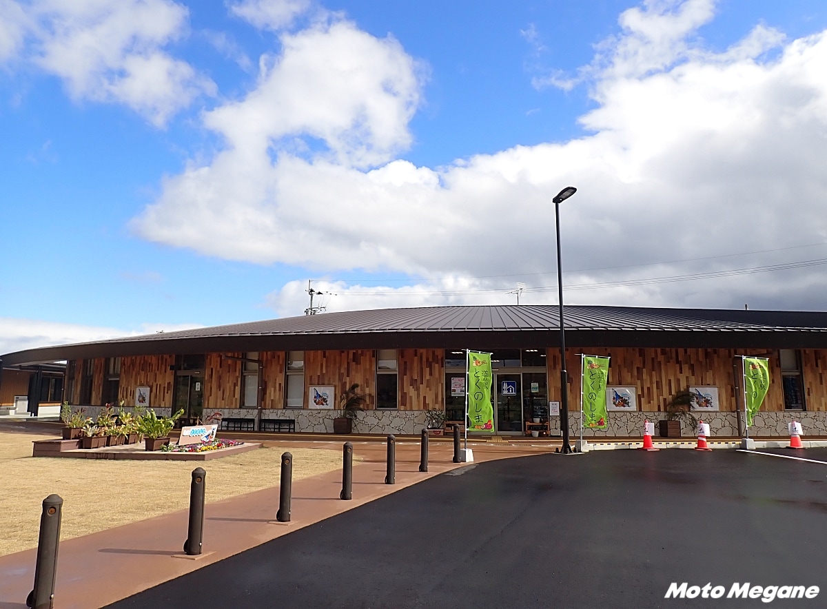 『道の駅 とくのしま』は徳之島の北東部、県道80号沿いに位置。周辺にはサトウキビ畑が広がり、徳之島の大自然を眺めることができる。売店では島の特産品や土産品、農水産物などを販売。黒糖や豆菓子、パパイアの漬物など、徳之島ならではの商品が取り揃えられている。レストランではハンバーグやチキン南蛮などの定食やカレー、鶏飯オムライスなどの料理などを味わえる。店内はテーブル席の他カウンター席も用意されている。徳之島へのアクセスは鹿児島からフェリーで14時間半。空港やフェリーターミナル近くでレンタルバイクも借りることができる。二輪駐車場も完備。