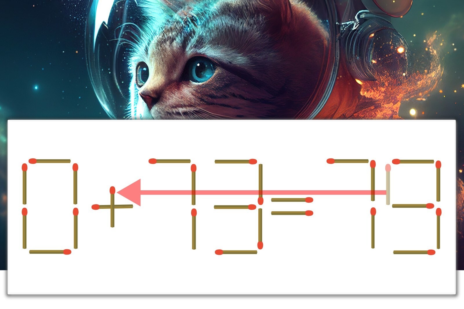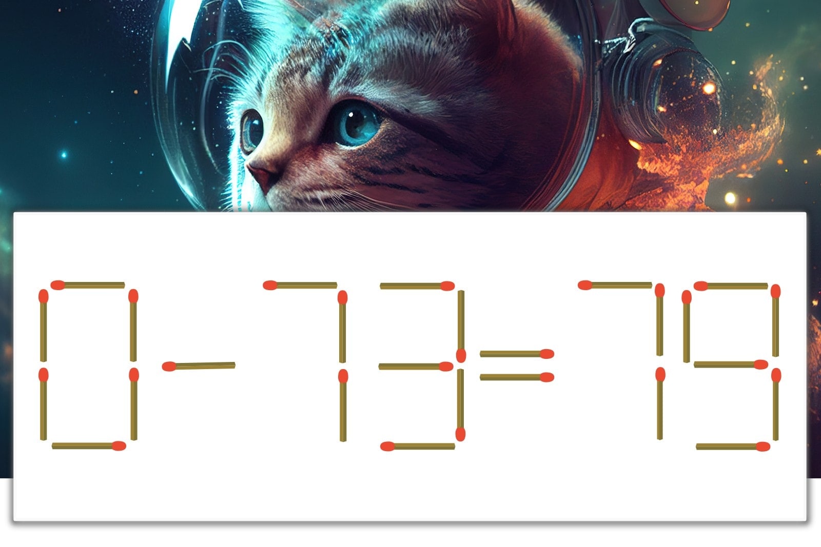「9」を別の数字に変化させると答えが導き出せます。「9」のマッチ棒を1本移動して、「-」を「+」にしてみましょう。すると、「0+73=73」が成立します。