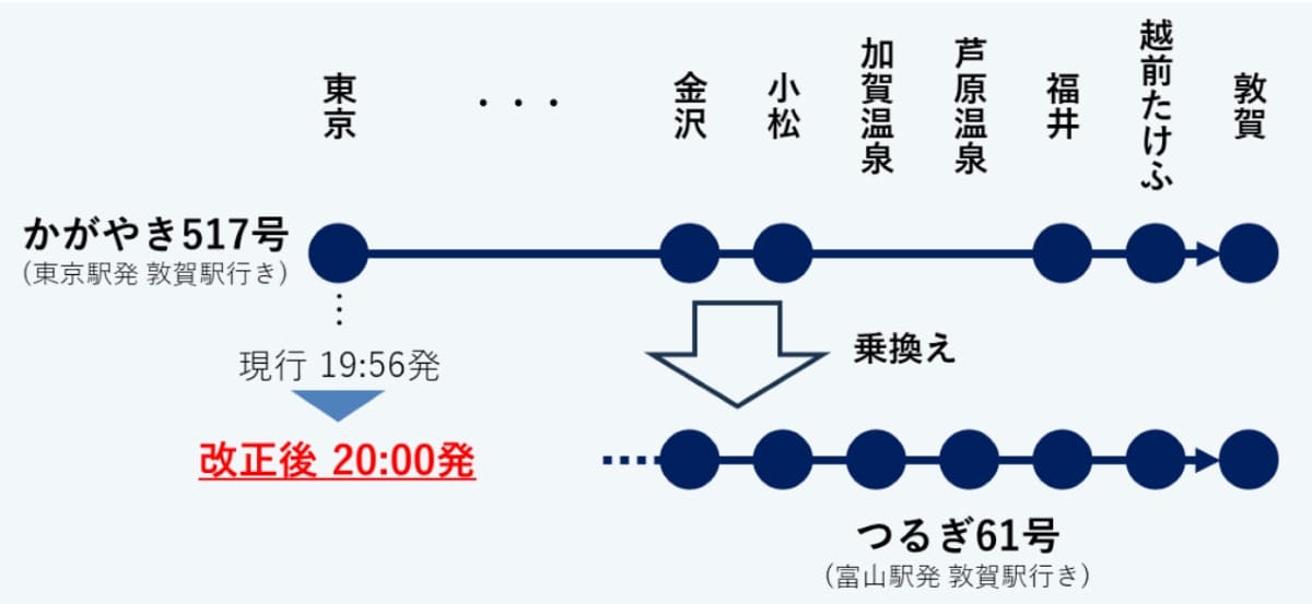 ・東京発・福井方面最終「かがやき517号」を20時00分発に繰り下げ