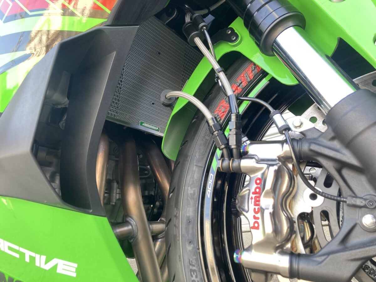 フルカウルで見え難いですがレーシーです。ブレンボやメッシュホーススウエッジラインとのマッチングも良さげです。