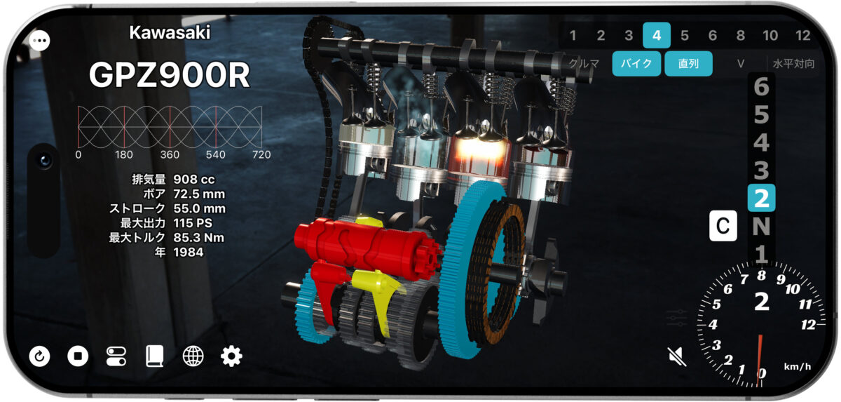 ※このアプリは、一般公開されているエンジンスペックをもとに学習・鑑賞用途向けに動作を再現したものであり、実際の機械の寸法や構造・意匠を忠実に再現したものではありません。
