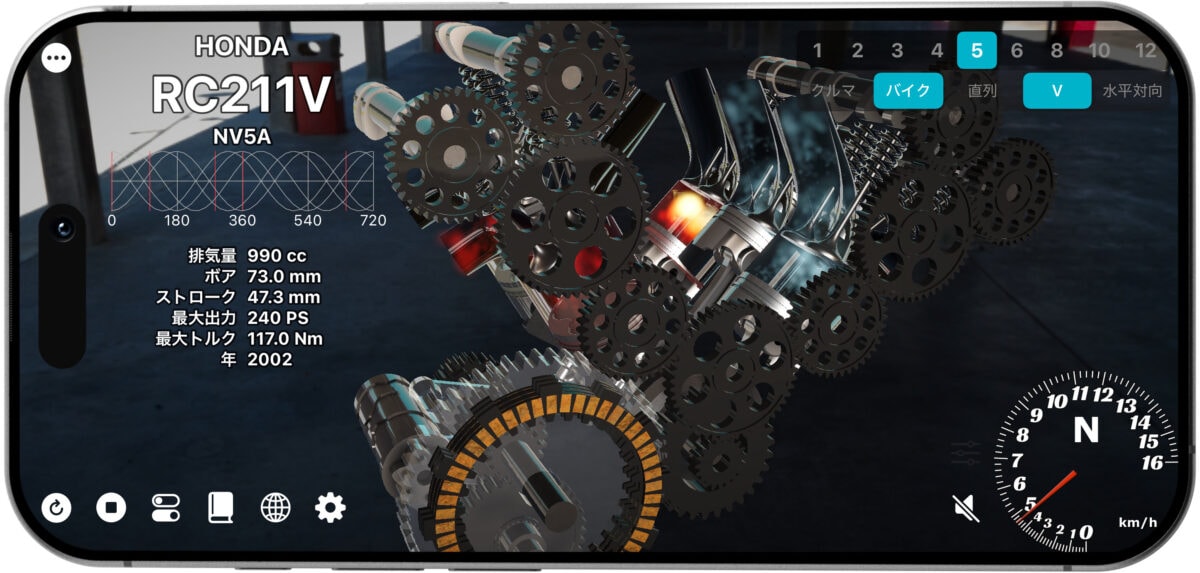 単気筒からV12まで。エンジンと変速機を手のひらで自在に操るエンジン・トランスミッション シミュレータアプリが登場