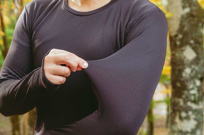 ストレッチ性が高くて動きやすく、抗菌防臭や帯電防止機能も搭載。袖口のサムホールで手の甲までカバーできるから、設営から焚き火、就寝までずっと着ていたくなるインナーです。