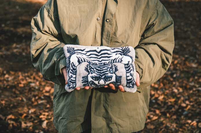 専用カバーはタイガー柄やシロクマ柄、イエティ柄などアウトドア好きのツボを突くデザインがそろい、インテリアとしても優秀。ふわふわの手触りもクセになる心地よさです。