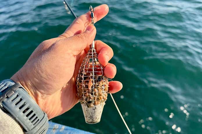 そのほかには、コマセを帯状に撒いてアタリが出るまでの時間を早めるライン引きと呼ばれる釣り方もあります。