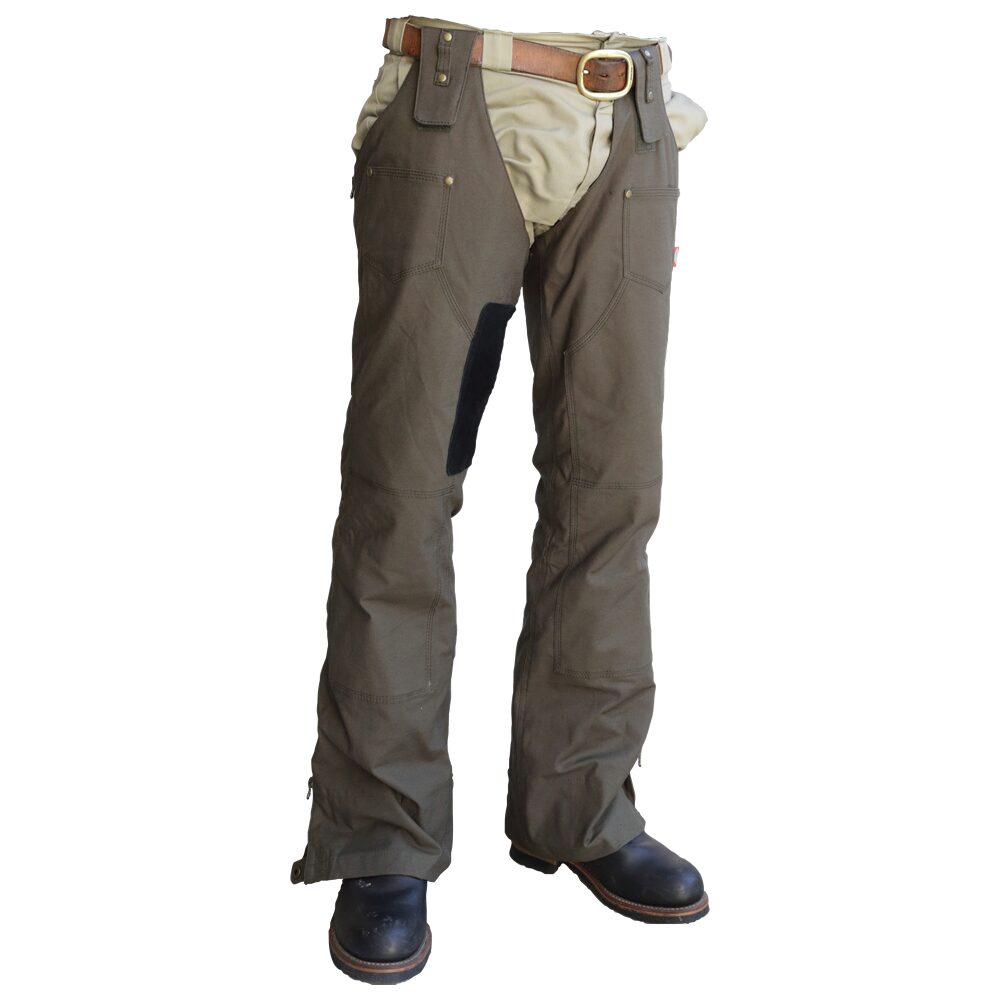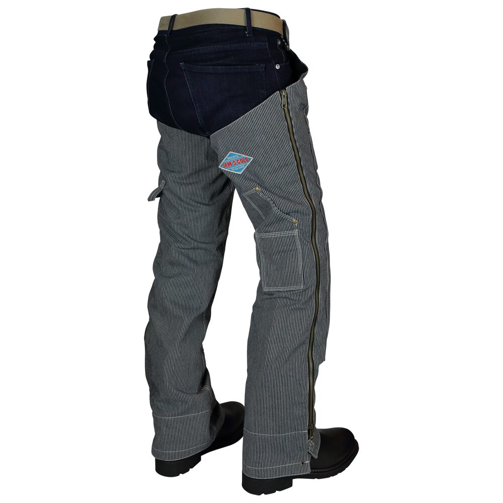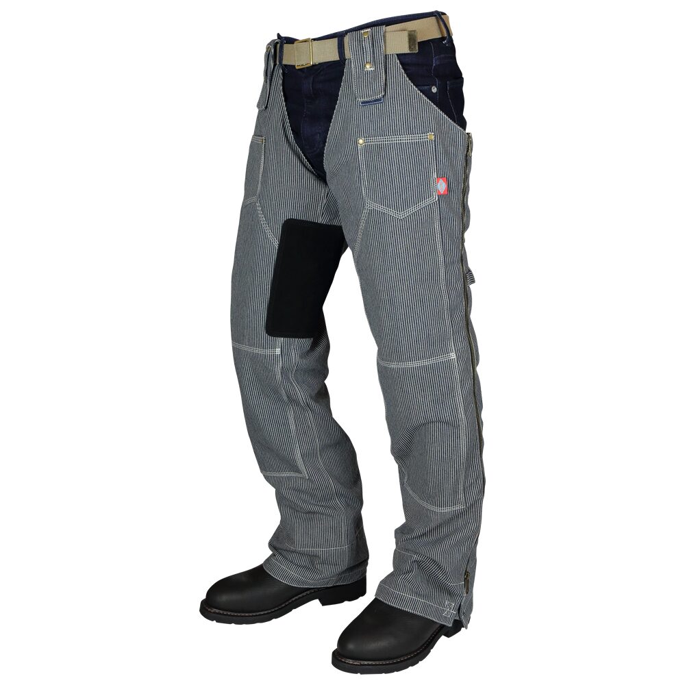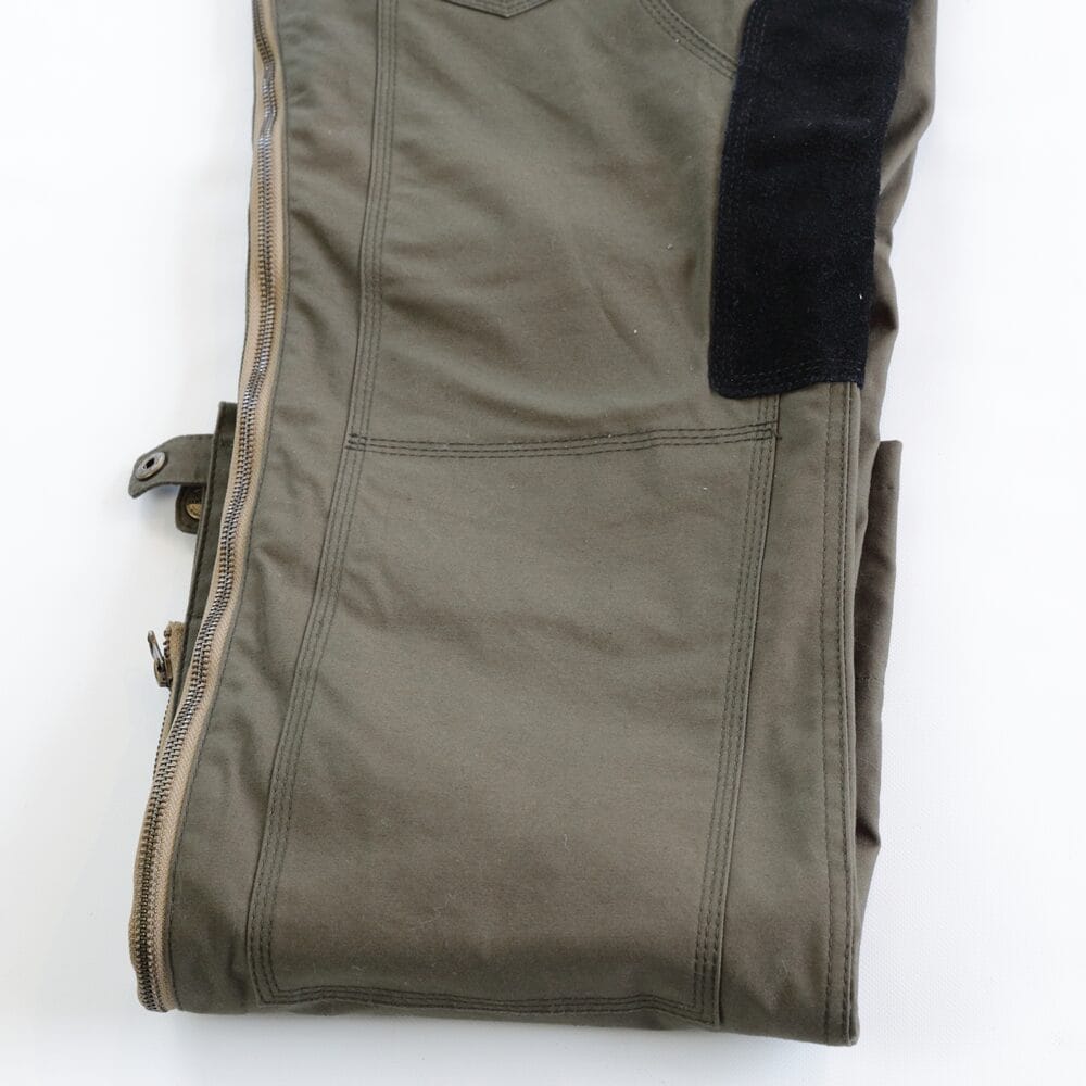 今年で5シーズン目のDEL RIO いわいるレザーチャップスのゴリゴリ感を無くしファッションともマッチングがいいペインターパンツ風おしゃれチャップス フルジップなのでブーツを脱がずに着脱!素材は防風!見た目以上にポカポカだ 重量もなくコンパクトだから携行も楽ちん 少しタイトに履くのがルックスグッドだ!