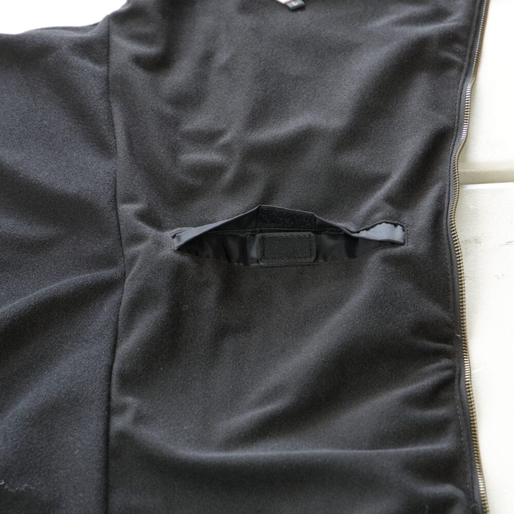 続いてミリタリーデッキパンツのWICKED! DEL RIOと同じ素材 ブーツを履いたままでも脱ぎ着が便利なサイドジップも同仕様。ライドオン&オフにうれしい裾丈の調整など、お腹までぽかぽかだから真冬のツーリングはもちろん冷凍キャンプ必須ギヤとしてもお勧めしたい