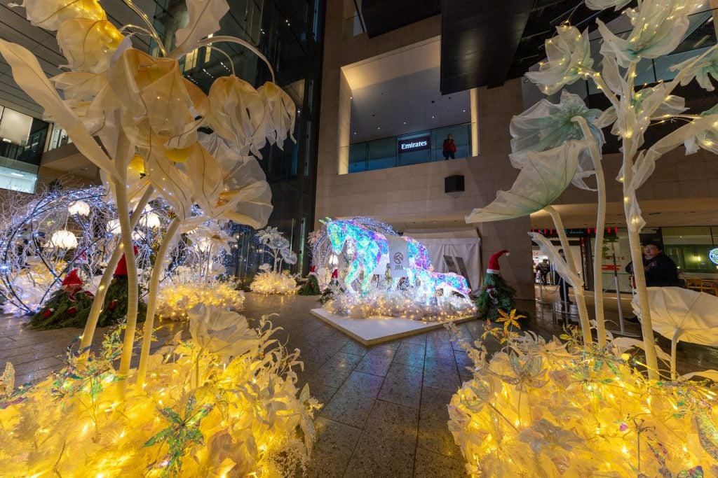 KITTE大阪・サンクンガーデンにて12月21日、JRA ILLUMINATION by Hanshin Racecourseの点灯式が行われた。会場には女優・タレントの森香澄さんとJRA阪神競馬場の友田義孝場長が登壇。点灯を合図とともに、ホログラム風に輝く馬や2メートルのビッグフラワーが光を放ち、会場は一気にきらびやかなムードに包まれた。