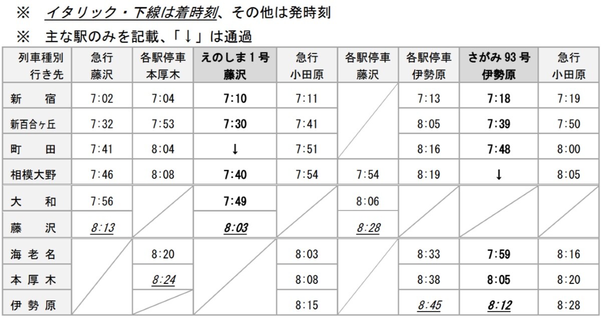 ・平日朝方:新宿発の「えのしま」「さがみ」計2本増発