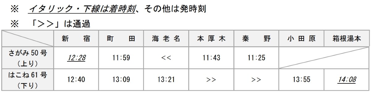 ・土休日:日中の「さがみ」「はこね」増発、一部列車の箱根湯本発着への区間拡大