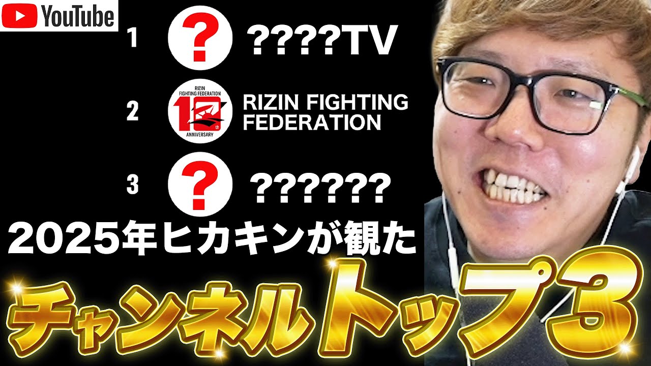 この中でヒカキンはまず、「よく視聴したチャンネル」の2位がRIZINの公式YouTubeチャンネルだったことを明かしました。