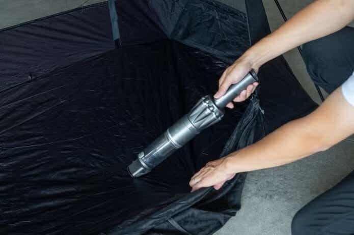 シガーソケットの充電器で走行中の充電も可能。クルマ以外にも、インナーテントやキャリーワゴン、コットやチェアについたゴミや髪の毛などの掃除にも役立ちますよ。
