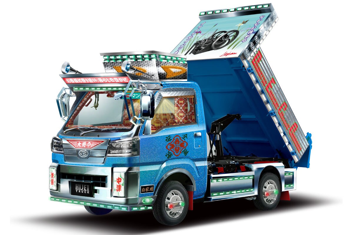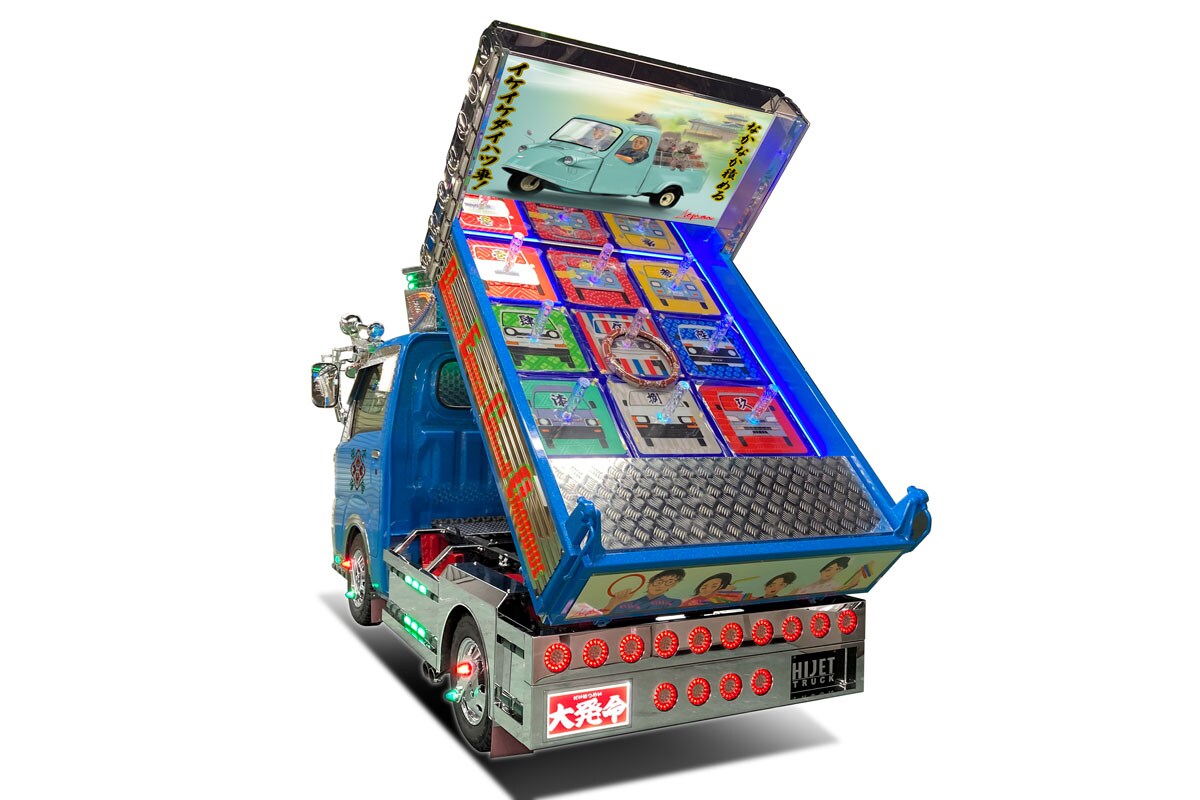 荷台には、歴代ハイゼットをモチーフにしたパネルを設置し、持ち上げると輪投げの的になる。加えて、手書きの吸入ガス発動機やミゼットのイラストでダイハツの歴史を表現。