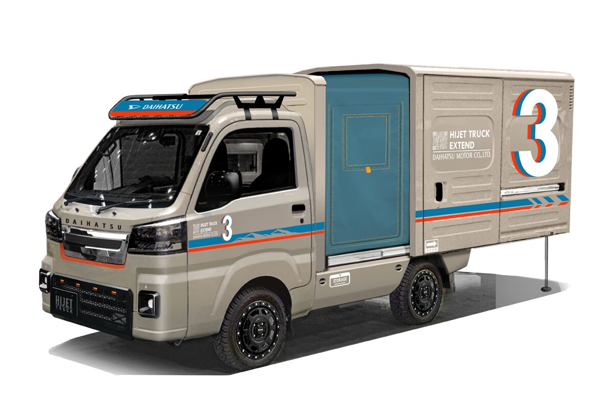 軽トラックの可能性を広げ、荷室拡張機能を備えており、アウトドアシーンを楽しむことができることを想定。
