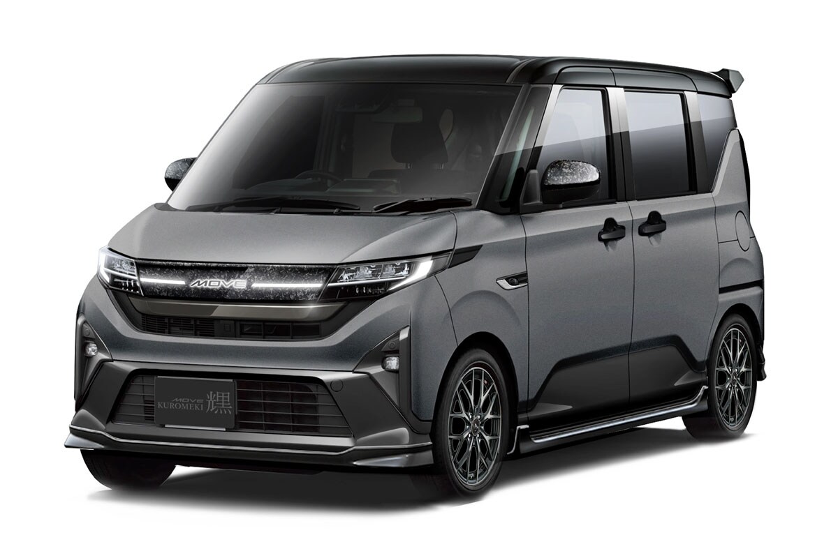 光るフロントグリルとリヤガーニッシュで質感を演出。ボディカラーや内装にマットグレーを採用。インテリアにはスウェード調素材を使用することで、質感の高いダークトーンを追求している。フロントバンパーガーニッシュ、フロントロアスカートなど、ダイハツ純正用品も装備している。