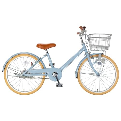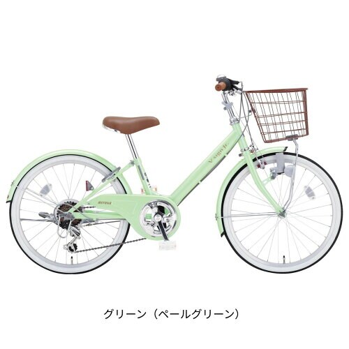 V字フレームで乗り降りしやすいモデル。グリップ、サドル、前かごがブラウンで統一され、おしゃれに敏感な女子におすすめです。
