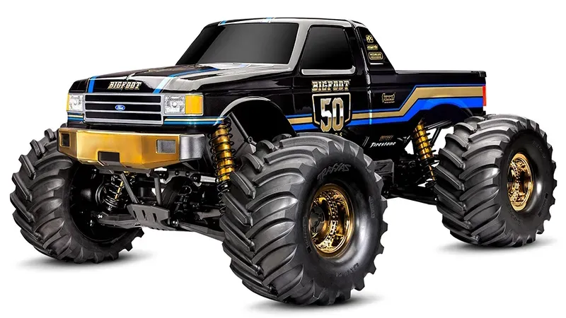 オーケー、本物の中古車と同じくらいの値段がするかもしれないが、これはかなり特別なラジコンカーだ。元祖モンスタートラック「ビッグフット」の50周年を記念して設計され、わずか1,975台の限定生産となる。各車にはレーザーエッチングされたアルミニウム製のシリアルナンバープレートが付く。特製のゴールドバンパーとホイールに気づくだろうが、その下にはゴールドアルマイト処理されたショック、アクスル、モーターヒートシンクも装備されている。トラクサス(※3) X-Maxxプラットフォームをベースにしており、この小さな怪物は本格的な四輪駆動で、50mph(80km/h)以上で爆走する。