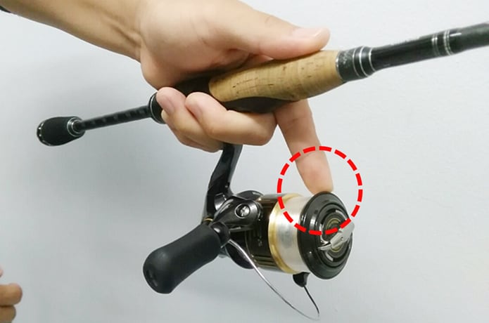 サミングとは、ベイトリールのバックラッシュを防ぐために親指の先端でスプールとラインを押さえることを指します。親指という意味のthumb(サム)に由来します。
