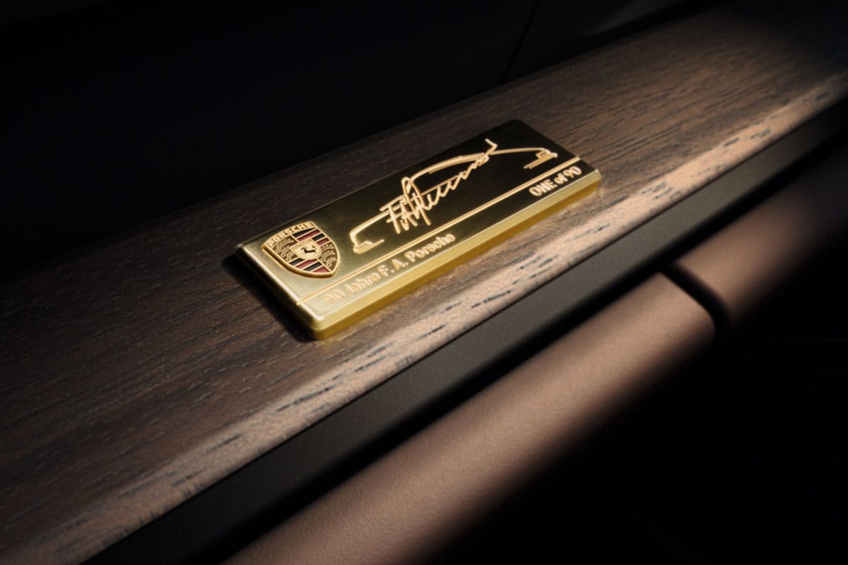 ダッシュボードの装飾トリムには、自筆サイン、オリジナルの1980年代の911のシルエット、「One of 90」の文字をあしらったゴールドメッキのプレートが貼られており、この911 GT3 90 F. A.ポルシェが希少価値の高い限定コレクターズアイテムであることの証明となっている。さらに、センターコンソールの収納カバーにもエンボス加工の「90 F. A. Porsche」の刻印が施されている。