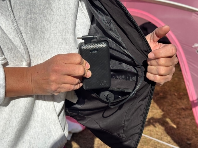 筆者としても、ストーブに頼らない“着る暖房”は冬キャンプの可能性を大きく広げると実感。商品説明によると、5秒で約39℃、最大で約60℃まで温まるとのこと。