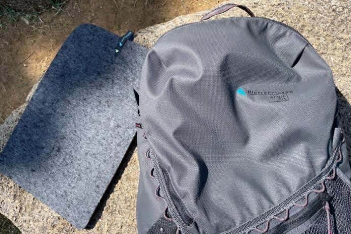 ショルダーハーネスの付け根にひと工夫あり、可動域が広いのでどんな体格の背中にもぴったりフィットします。 内部にはウールの廃材で作られたシットパッド(座布団)が付属しており、腰を下ろす場所が見つからないとき、さっと引き出したらスマート!?