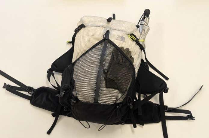 22Lの小型パックながら、ショルダーハーネスにスタビライザーストラップが付き、背負い心地にこだわりあり。グラナイトギアのバックパックを象徴するストレッチメッシュのフロント&サイドポケットも備わり、使い勝手は上々です。