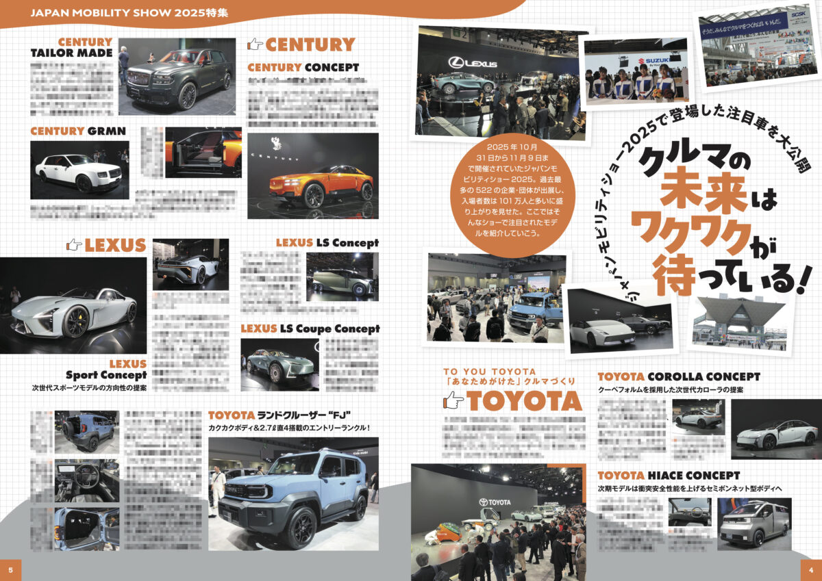 今回の巻頭は、ジャパンモビリティショー特集だ。会場では過去最多規模となる出展が並び、未来の生活像に近いモビリティから、現実的に“次に選べる”市販モデルまで、幅広い提案が行われました。