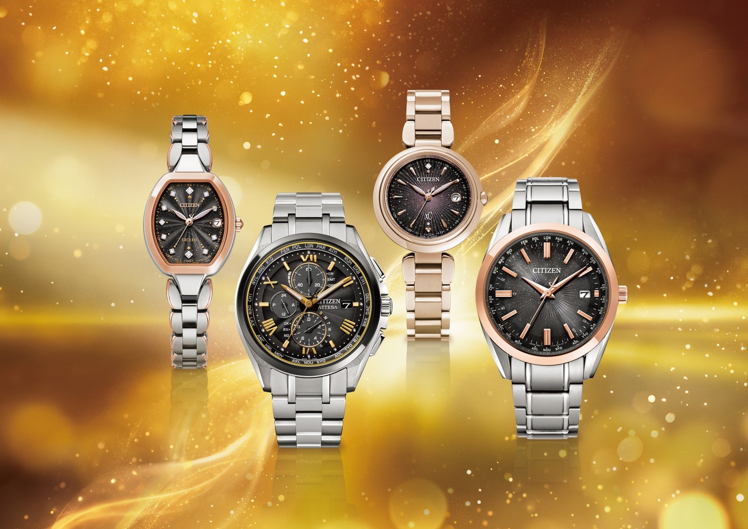 このコレクションは、『シチズン エクシード』、『シチズン アテッサ』、『シチズン クロスシー』、『シチズンコレクション』という個性の異なる4つのブランドで展開。文字板の中心から放射状に広がる「サンレイパターン」とゴールドのアクセントを共通のデザインとし、年始にふさわしい華やかさを表現している。