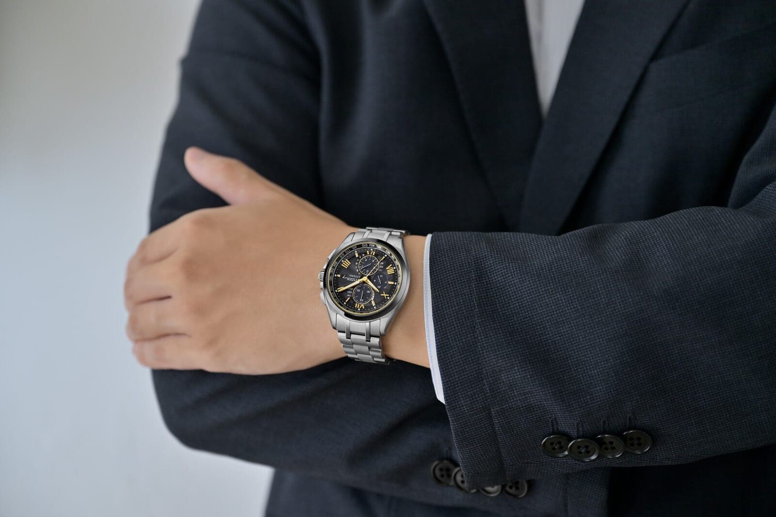数あるモデルの中で、我々が特に注目したのは「アテッサ」の限定モデルだ。ケースとバンドには、シチズン独自の「スーパーチタニウム™」を採用。これは、純チタンに表面硬化技術「デュラテクト」を施すことで、ステンレスの5倍以上の表面硬度を実現しながら、驚異的な軽さを両立した素材だ。